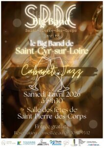 Le Big Band de St Pierre des Corps sera heureux d’accueillir le Big Band de Saint-Cyr-sur-Loire pour une soirée cabaret jazz conviviale. Comme chaque année, une restauration sur place sera proposée. Le contact pour réservation: 06 30 97 93 12